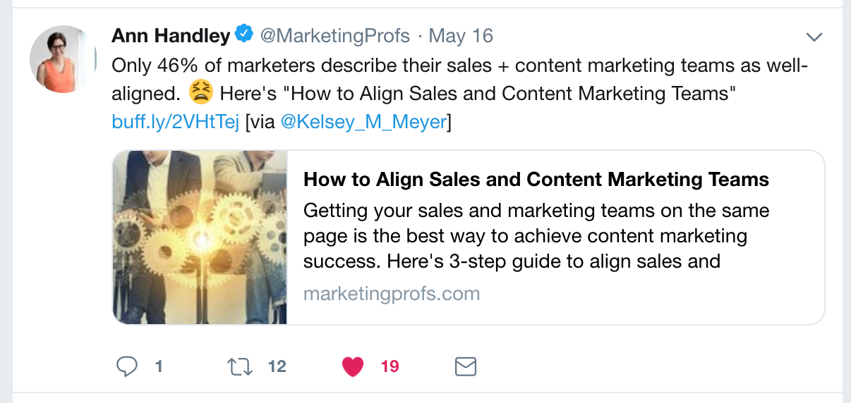It’s not just how many times people share your article or how many comments your article gets that are important. It matters who is sharing or interacting with your content, too. It’s very possible to have a big name in your industry notice your article, admire it or find it valuable, and then either share it out or reach out to you about it in some way. This has actually happened to one of our own company leaders recently. Ann Handley of Marketing Profs shared one of our recent articles on Twitter, which put us on the radar of a potential client who reached out to learn more about our services.
