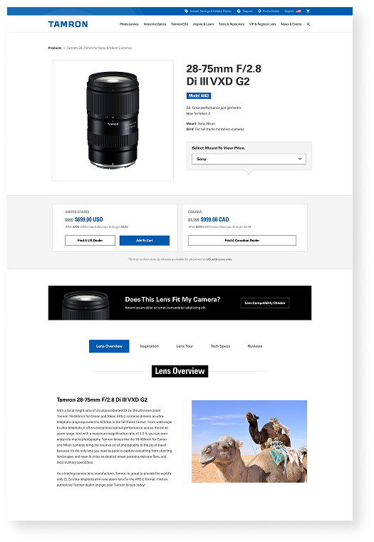 Tamron Americas: Revamping a Website for Enhanced Consumer Support and Future E-Commerce Growth