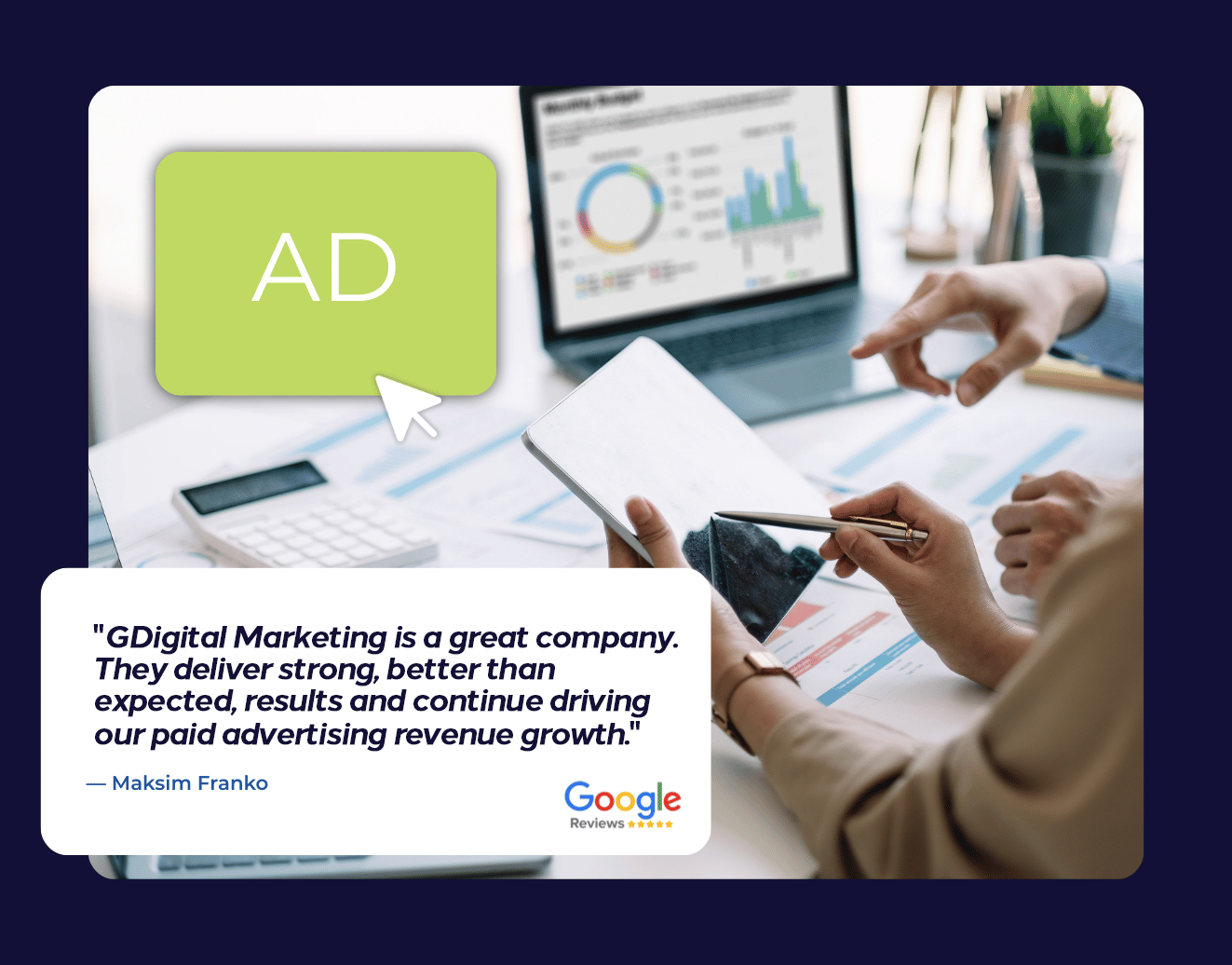 Our experts handle the heavy lifting of managing your Google Ads to make sure you're reaching your target audience in the right place at the right time.